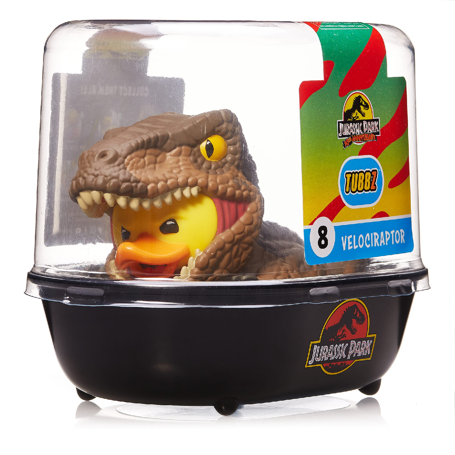 Велоцираптор – официальная коллекционная утка TUBBZ по «Парку юрского периода». Велоцираптор был первым динозавром в «Парке юрского периода», а теперь он бежит к пруду, поняв, что стал коллекционной фигуркой. Возможно, у него личностный кризис на фоне частичного обращения в утку, но любой поклонник «Парка юрского периода» сразу же узнает знаменитого динозавра.