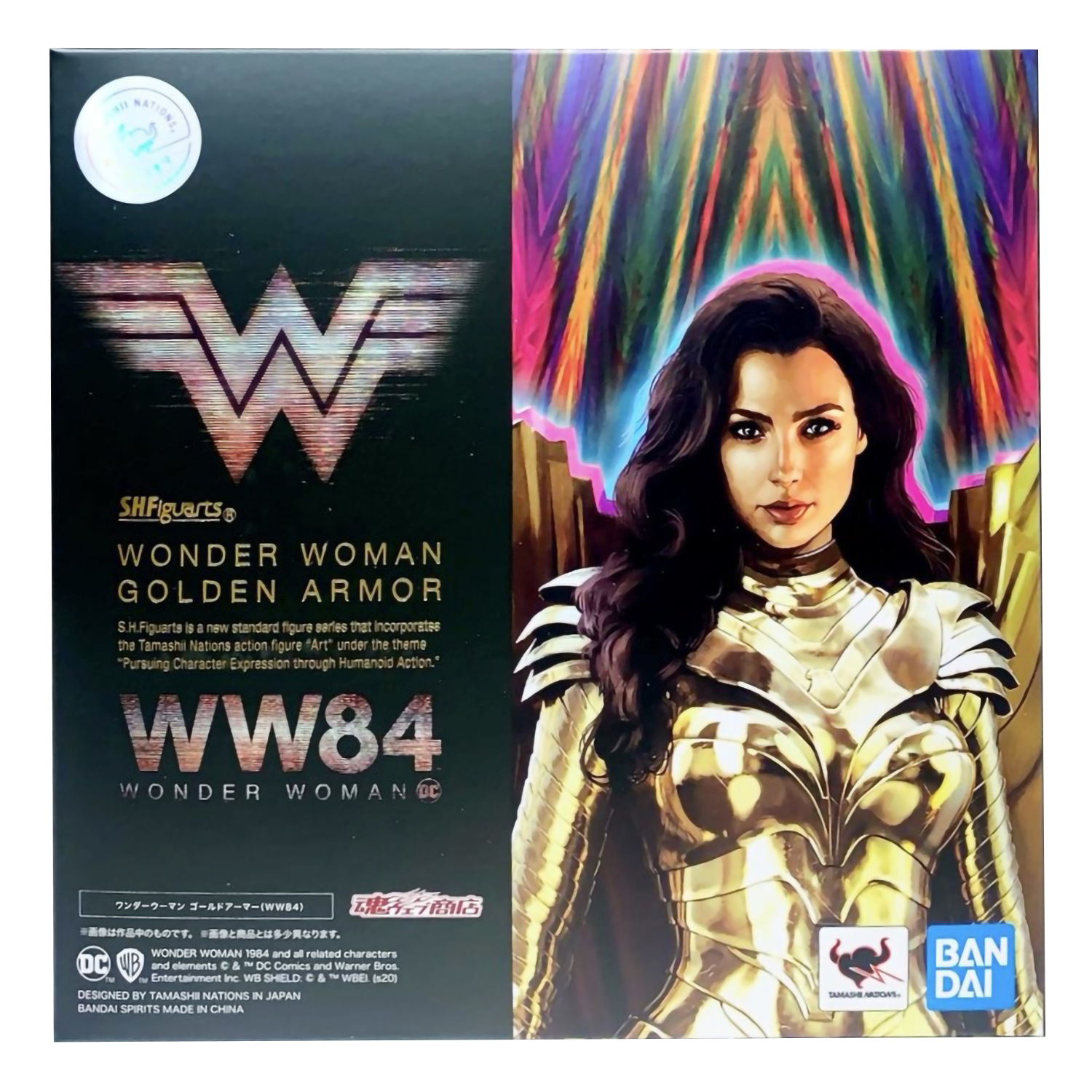 Фигурка S.H.Figuarts DC: Wonder Woman 1984 – Wonder Woman Golden Armor выполнена в виде персонажа-супергероя Чудо-женщины из серии комиксов издательства DC Comics. Чудо-женщина – принцесса амазонок, известная, как Диана. Диана – опытная воительница, обладающая сверхчеловеческой силой, скоростью, выносливостью. Он умеет общаться с животными, а также использует лассо Истины, с помощью которого может заставить говорить правду.