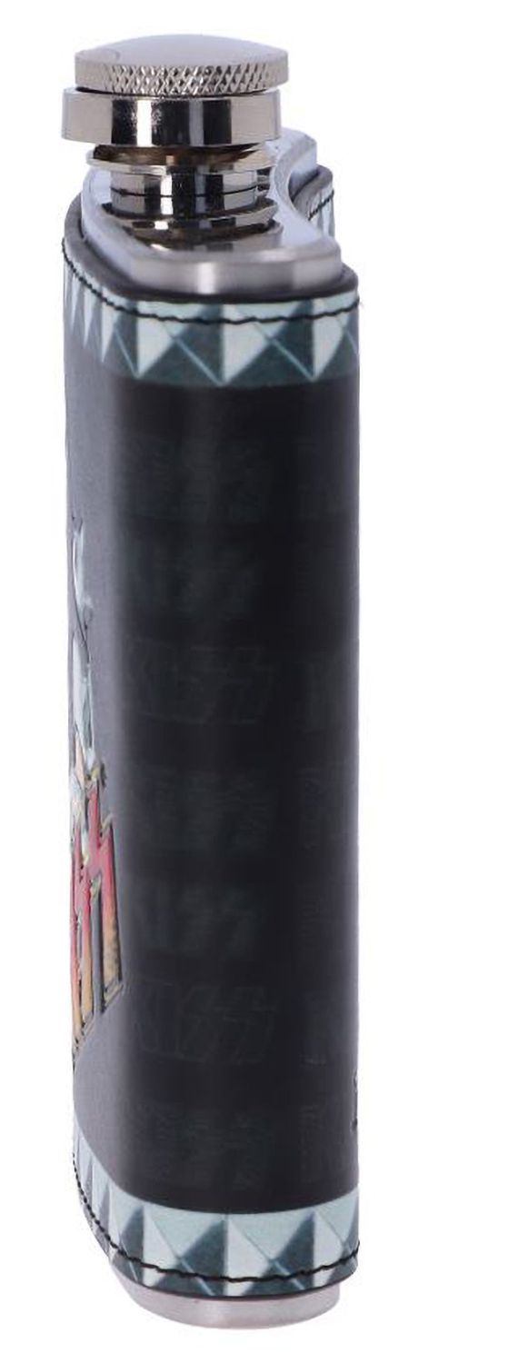 На фляге KISS: The Demon изображен участник группы KISS Джин Симмонс, выступающий под сценическим псевдонимом The Demon.