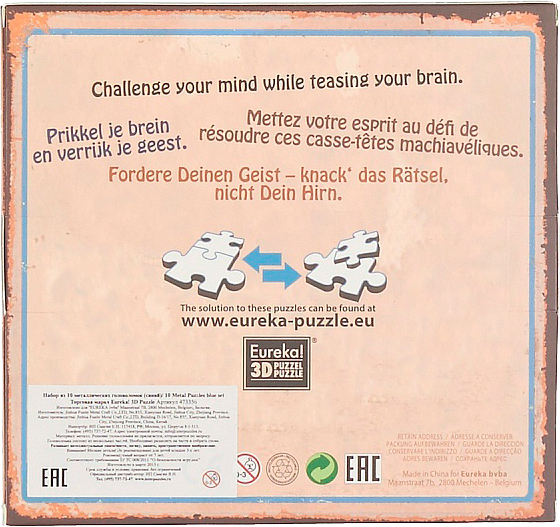 Описание Головоломки Eureka: набор из 10 металлических головоломок (синий):