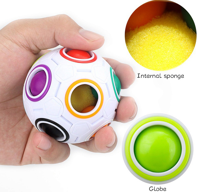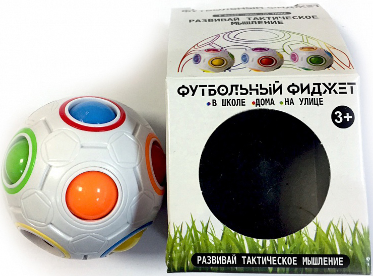 Футбольный фиджет – шар-головоломка начального уровня сложности. Аналог Labirintus COSMO или Какаду Волшебные Пузырьки, только здесь цветные шарики гладкие и блестящие.