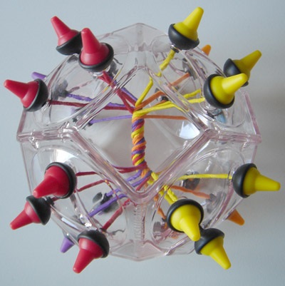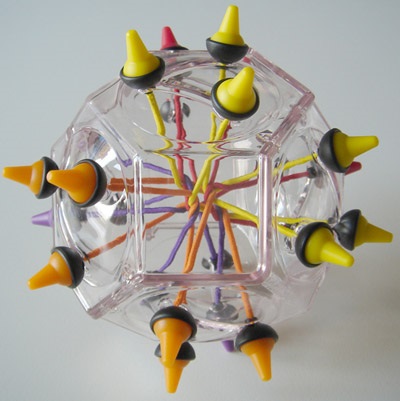Итак, правила игры: Необходимо переместить цветные фишки с одной стороны головоломки на другую, при этом избежав запутывание нитей. Более продвинутые игроки могут попытаться собрать красивый (симметричный, фигурный и пр.) узел или даже узор из нитей, сохранив при этом основное правило головоломки – 1 цвет на 1 стороне.