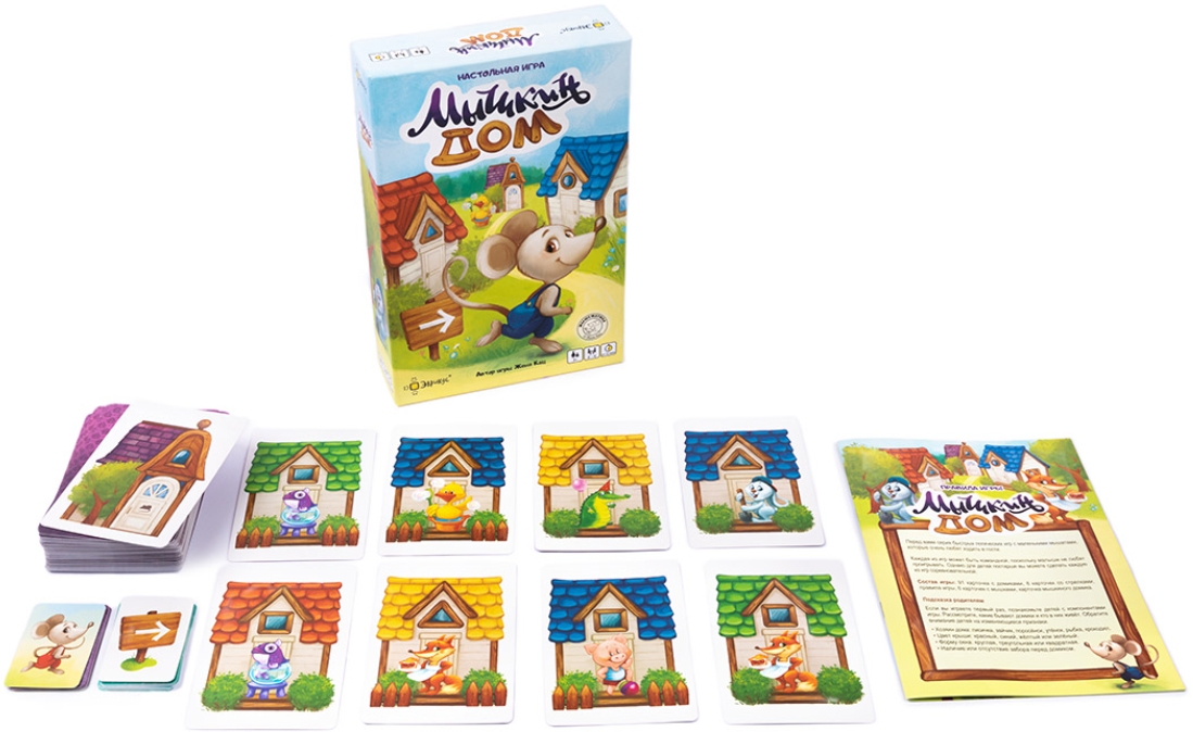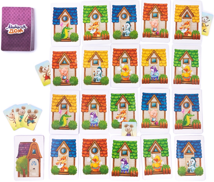 - Мышкин домик: каждый игрок выбирает мышонка и начинает перемещать его от угла игрового поля из домиков. Цель – довести свою мышку до карточки с мышкиным домиком.