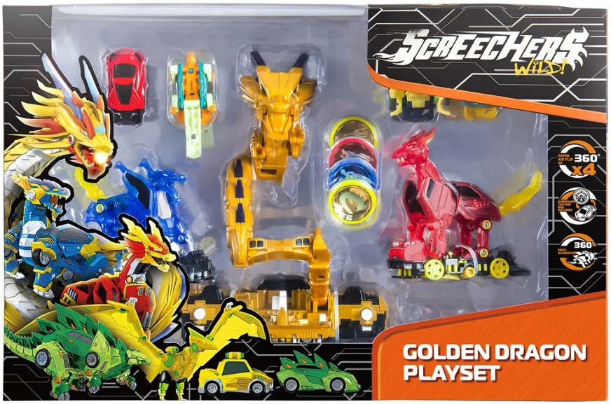 Оставить отзывГолден Дрэгон 3в1 – супермощные скричеры с секретной трансформацией драконов! Теперь можно выбирать сценарий баттла: усиленный скричер-диск 4 сезона или скричер-кар для продолжения баттла в гонке, а также минискричер! Он делает кувырок на 360° и трансформируется без помощи диска.