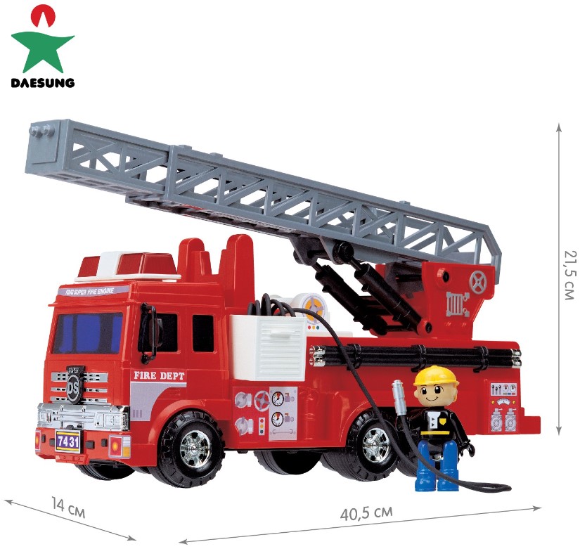 Характеристики игрового набора Daesung: Пожарная машина со шлангом и фигуркой:
