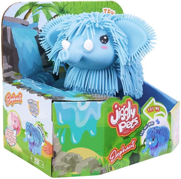 Почувствуйте весёлую встряску с Джигли Петс! Знакомьтесь с Мамонтенком – самым милым и забавным интерактивным питомцем! Его так и хочется потрогать! Нажмите на его голову, и он начнет смешно ходить и поднимет хобот, покачиваясь под заводную музыку. Он так круто двигается, что его яркая шерсть смешно трясется с ним в такт. А еще она такая мягкая и эластичная, что хочется тянуть и тянуть! Джигли Петс Мамонтенок станет вашим лучшим другом! Берите Мамонтенка с собой куда угодно и отрывайтесь под музыку вместе с ним. Устройте Джигли-встряску!
