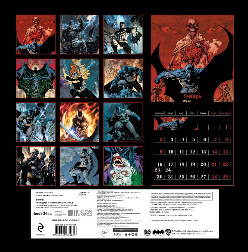 Описание календаря Бэтмен 2023 настенный на 2023 год: