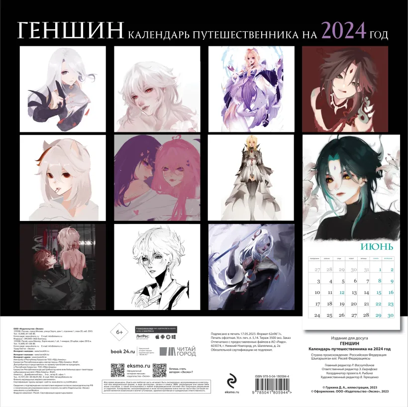 Описание календаря Геншин Календарь путешественника на 2024 год настенного: