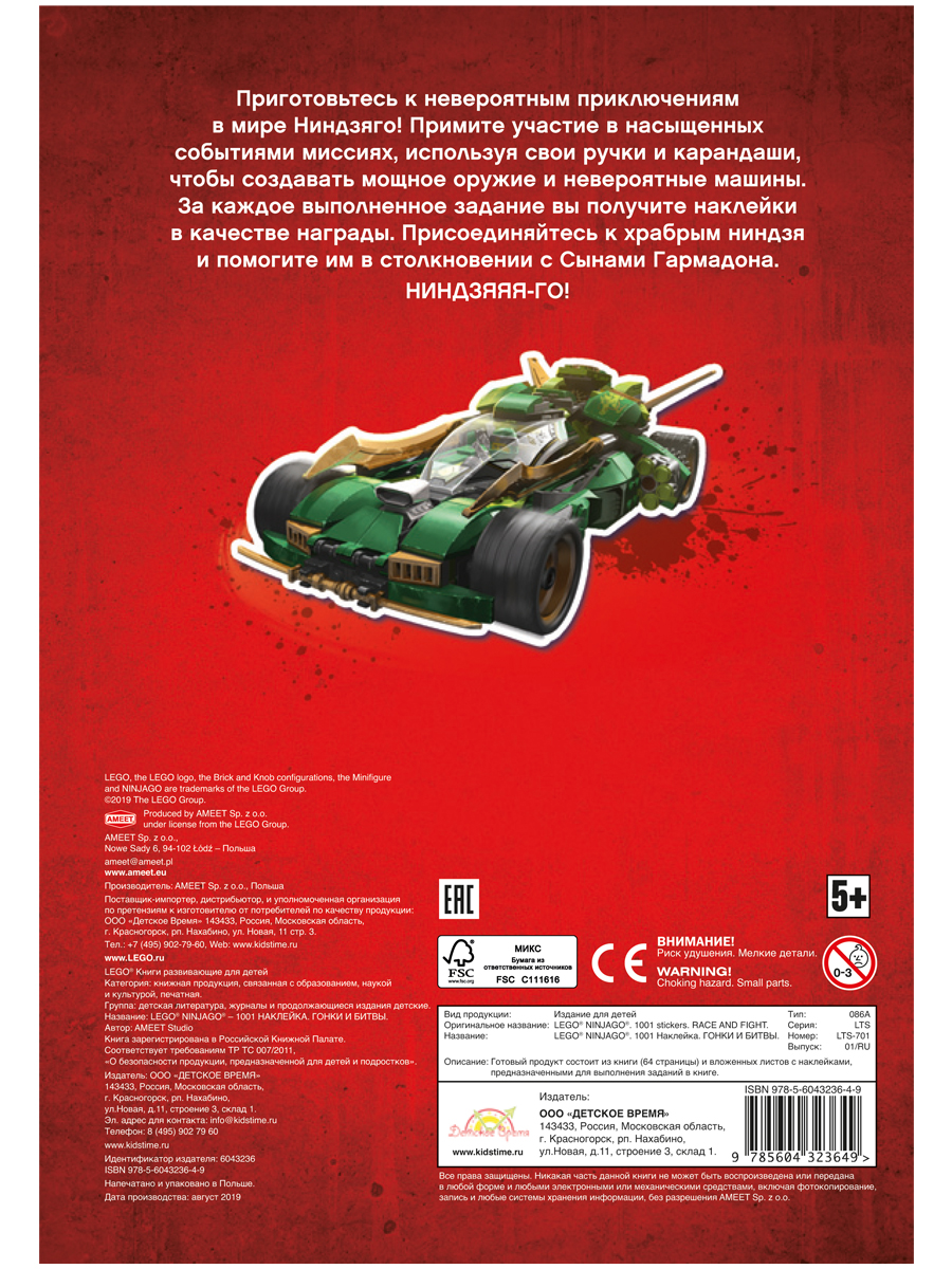 Характеристики книги с наклейками LEGO Ninjago – Гонки и битвы: