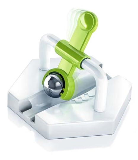 В конструкторе GraviTrax: Молоток ребенок может зарядить шарик с максимальной скоростью и силой; добавить азарта и новых эмоций в игру.