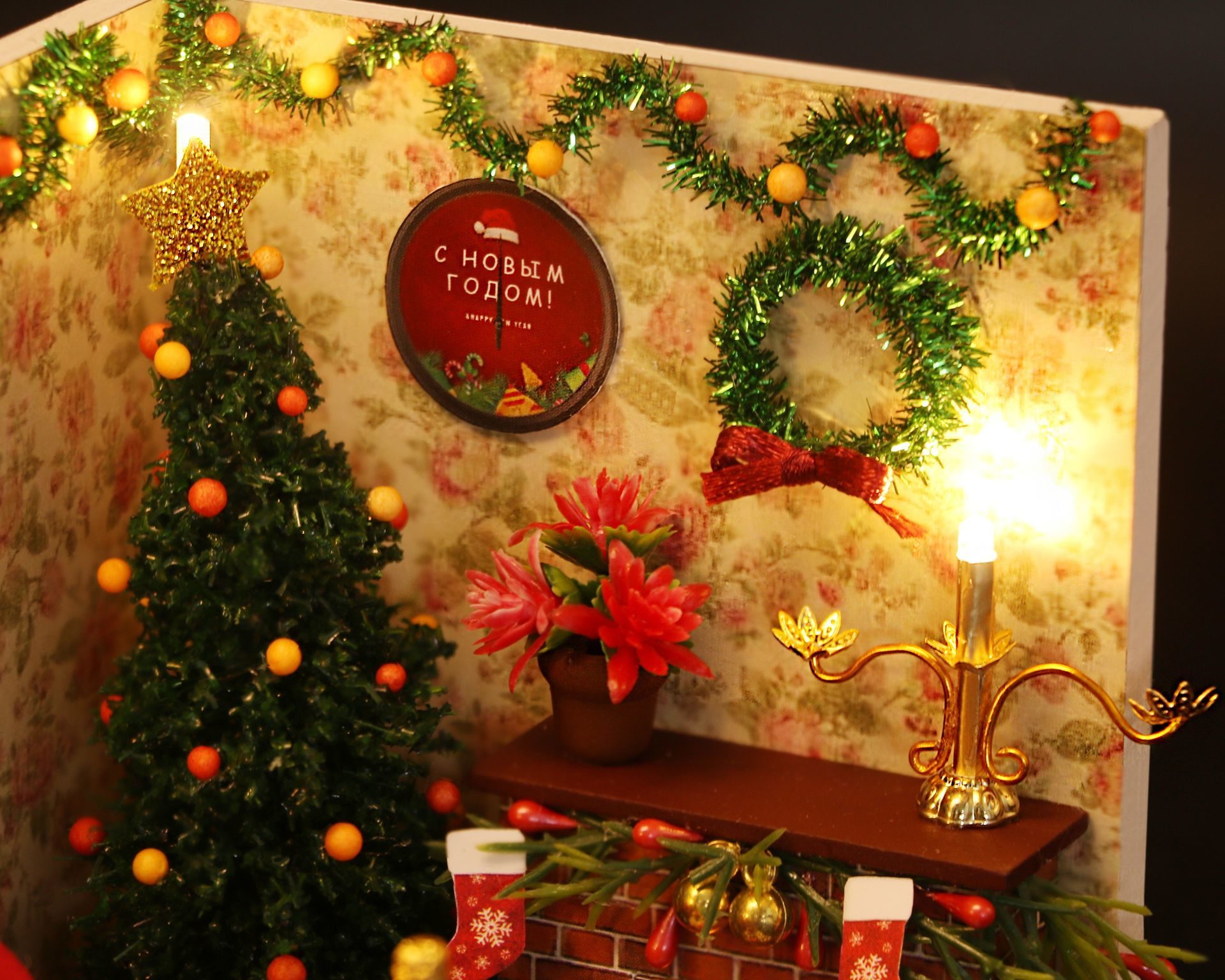 Румбокс Diy House Новогодняя сказка – это отличный новогодний подарок как для любителей интерьерных конструкторов, так и для тех, кто никогда не пробовал собирать миниатюры. Небольшой размер румбокса, средний уровень сложности и праздничный дизайн – идеально для создания Новогодней сказки своими руками!