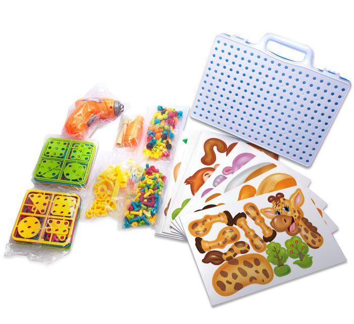 А для родителей самое главное то, что конструктор развивает: мелкую моторику рук, координацию движений, внимание, мышление, память, восприятие цвета и формы, навыки конструирования, художественное воображение и творческие навыки. Дрель оценят не только мальчики, но и девочки! Им будет интересно собрать цветочную поляну или разноцветных животных. Вариантов очень много, главное включить фантазию.