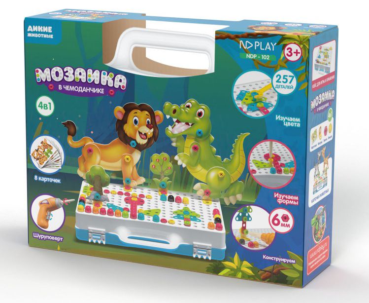 Описание конструктора Мозаика в чемоданчике 4в1: Дикие животные: