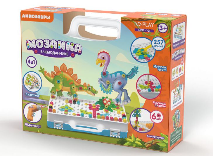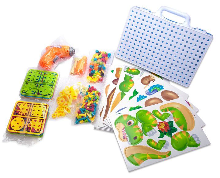 Оставить отзывРазвивающий детский конструктор 3D с дрелью 2-х режимов (+3 насадки) и 249 ярких деталей с болтами в чемодане + 8 карточек с доисторическими животными!