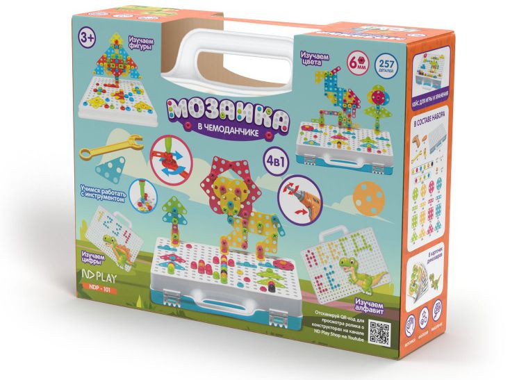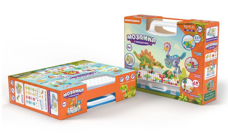 Описание конструктора Мозаика в чемоданчике 4в1: Динозавры: