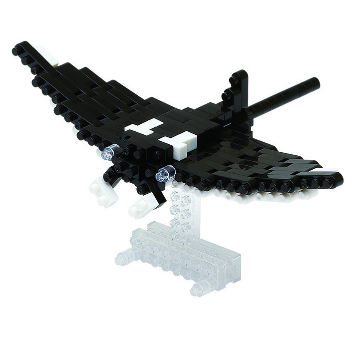 В отличие от других скатов, манты предпочитают держаться в верхних слоях воды, иногда лежат на поверхности и даже выпрыгивают! Не удивительно, что это чудесное создание вдохновило дизайнеров Наноблок на создание микро-модели, обладающей характерной расцветкой, подвижными плавниками и длинным острым хвостом.
