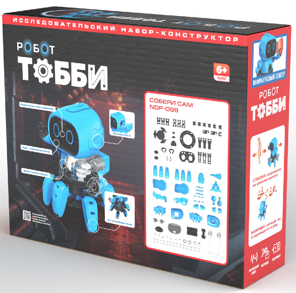 Конструктор Робот Тобби – это интерактивный шестиногий робот с искусственным интеллектом, работающий от батареек.
