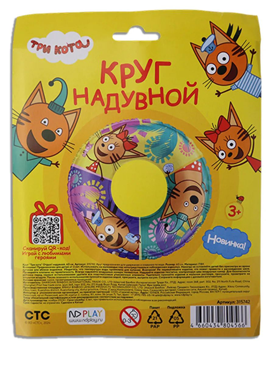 Характеристики круга для плавания Три кота Отдых! (надувной) (60 см):