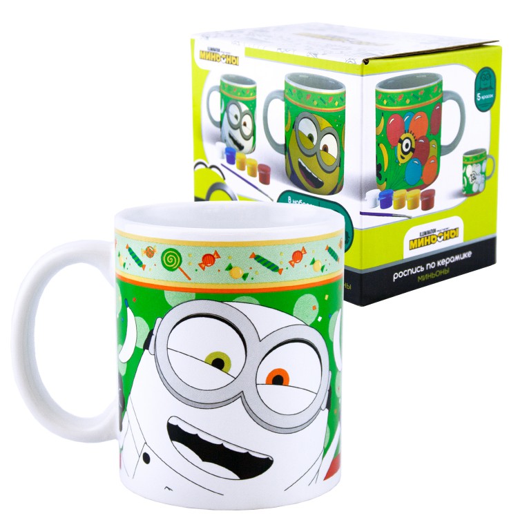 Кружка Миньоны: Воздушные шары керамическая + краски и кисточка (325 мл)