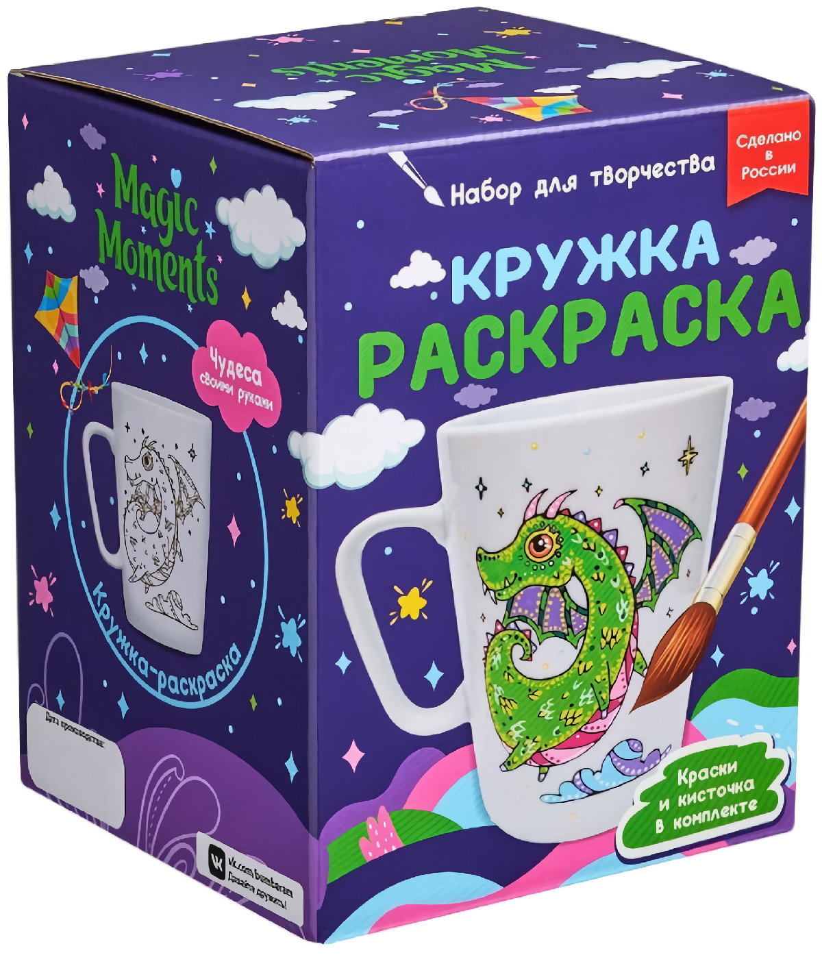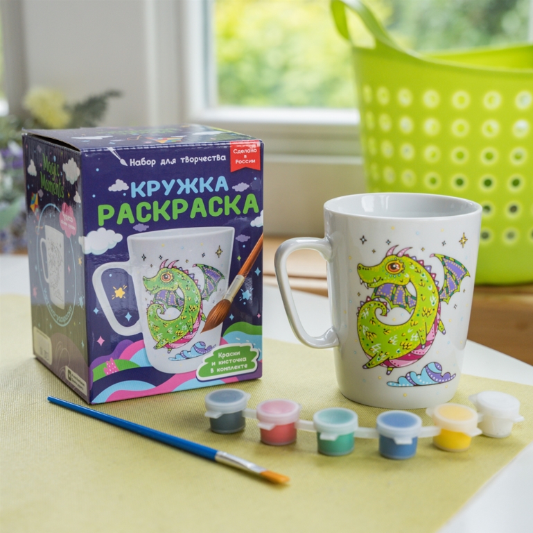 Кружка-раскраска – удивительный набор для творчества, ведь это одновременно и увлекательное занятие и прекрасный сувенир. На этой кружке изображён милый зелёный дракончик – символ 2024 года. Кружка, раскрашенная собственными руками, станет достойным подарком близким или займет почетное место в коллекции.