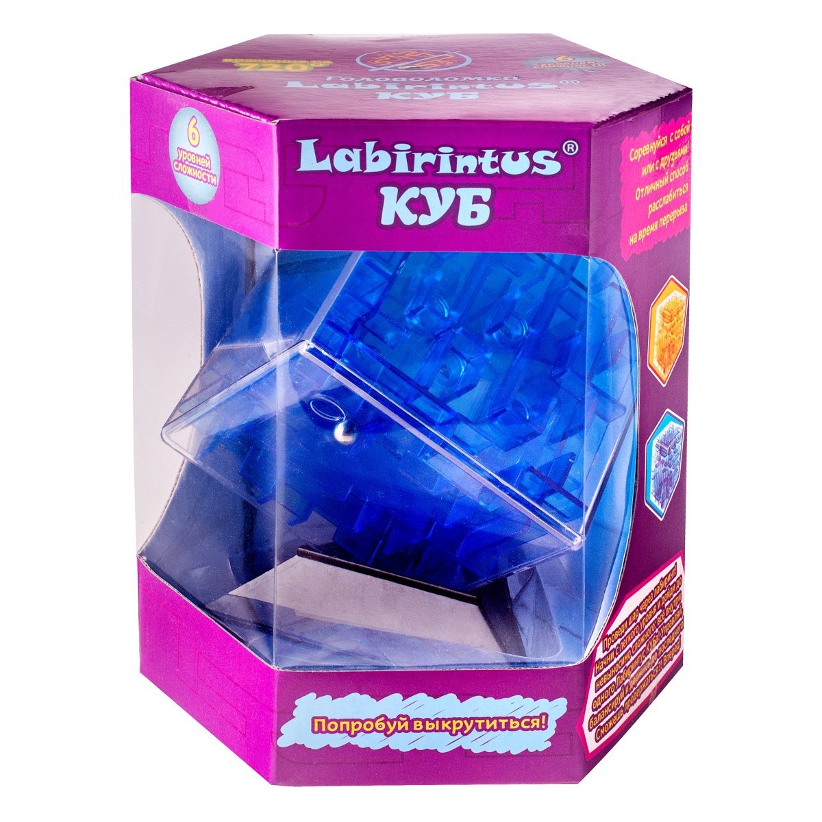 Представляем вашему вниманию куб-лабиринт Лабиринтус, лабиринт из различных дорожек в прозрачном кубе, который ведет к цели металлический шарик, путем вращения прозрачной сферы в руках.
