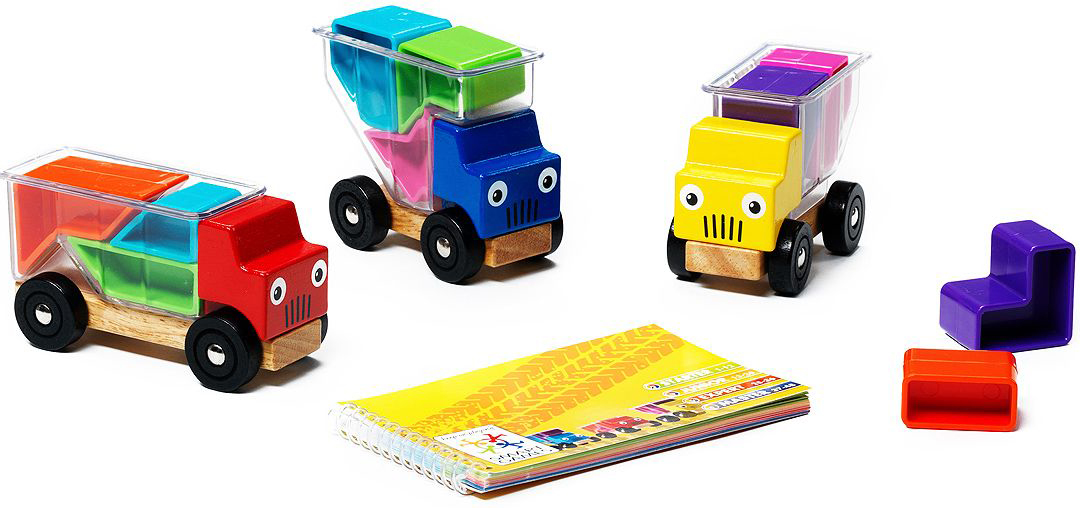 Над заданиями уровня "мастер" интересно поломать голову не только малышам, но и школьникам. В состав набора входят 3 цветных грузовичка, набор из восьми формочек, правила, комплект заданий.