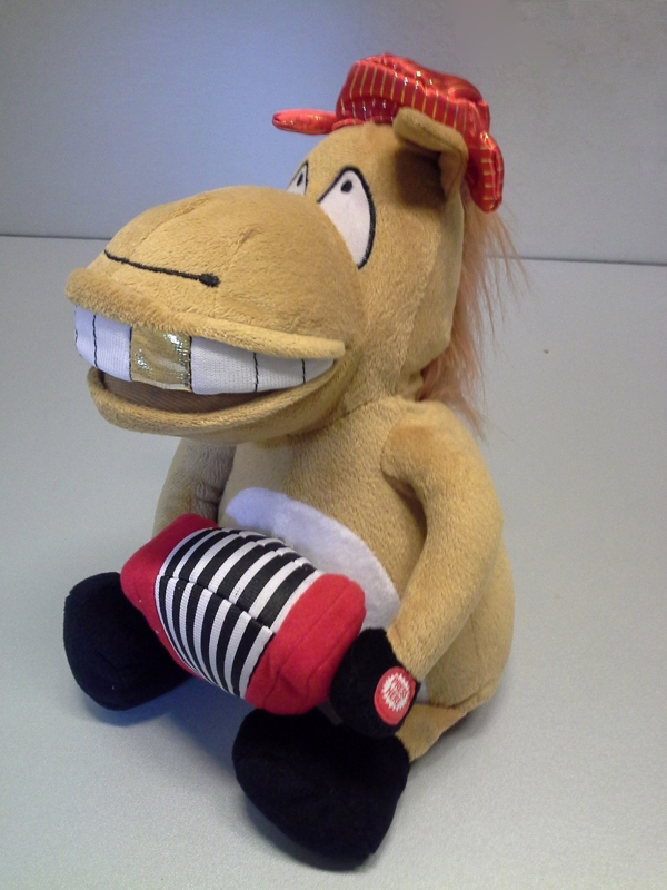 Оставить отзывЛошадь Цыган, выполненная в виде символа 2014 года, поет популярную песню и зажигательно под нее танцует.