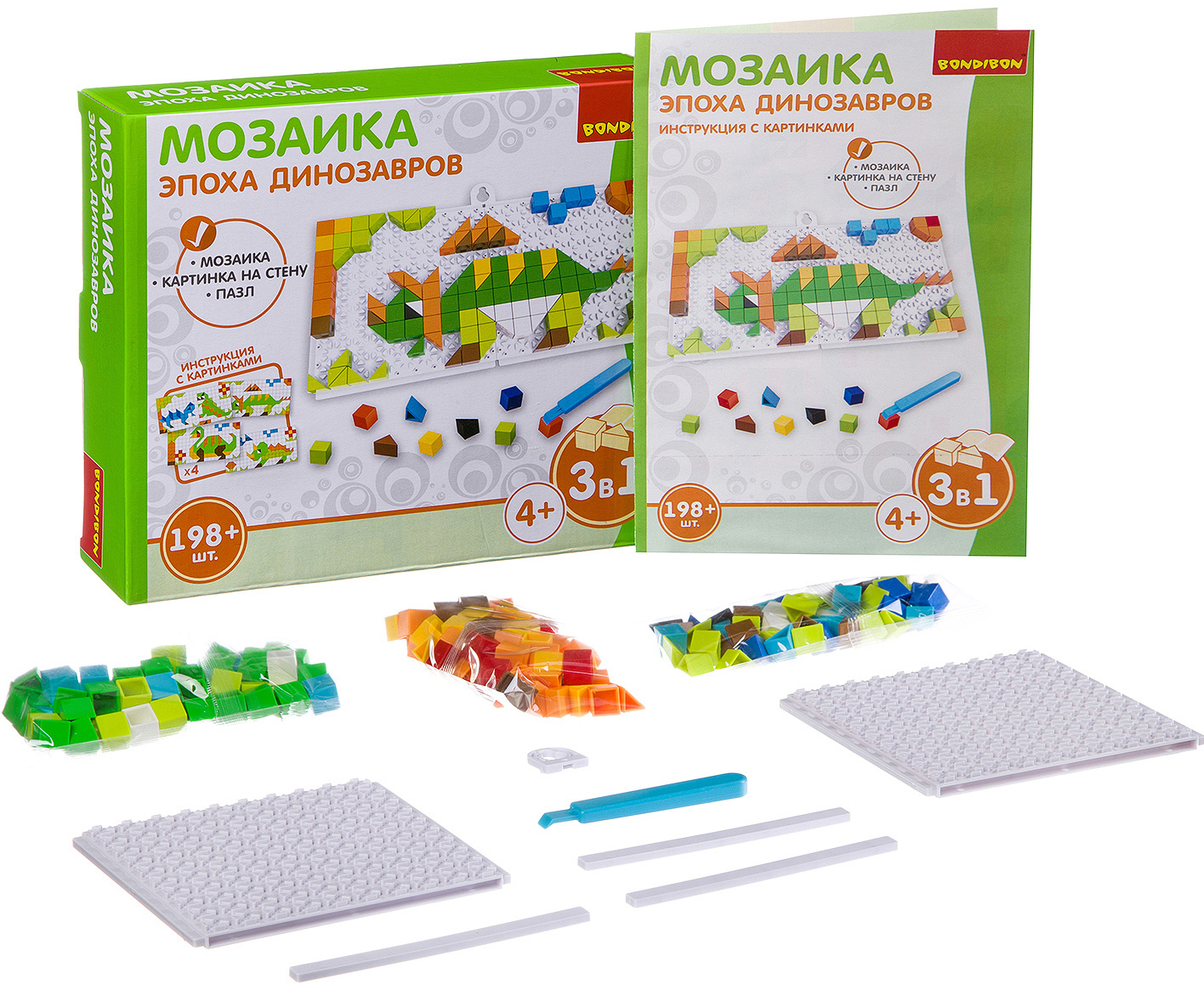 Комплектация мозаики Эпоха динозавров (198 деталей):