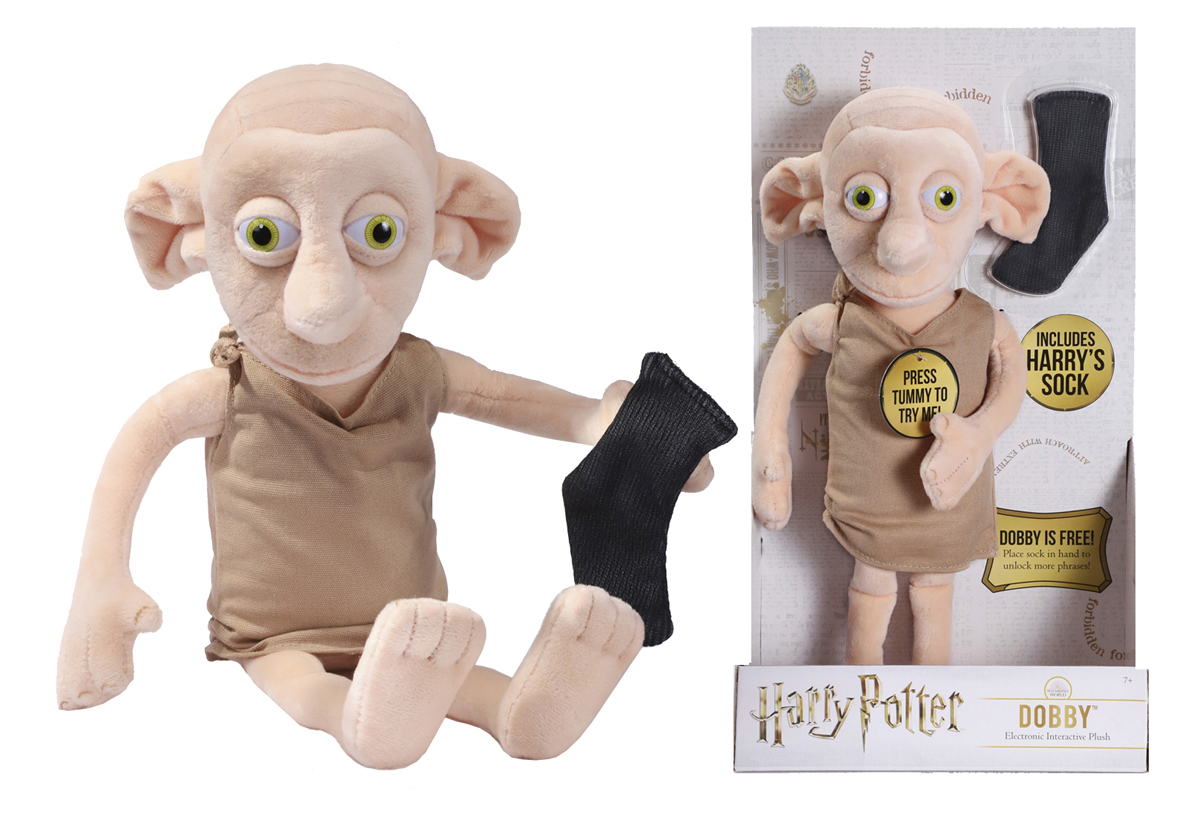 Принесите домой своего собственного Добби, который при нажатии на живот умеет говорить целых 10 фраз. Дайте ему в руку носок, если хотите услышать еще 6 «секретных» фраз! Уменьшенный Добби одет в свою фирменную наволочку и говорит на английском языке, а его крохотный носок идеально подходит для ног домашнего эльфа.