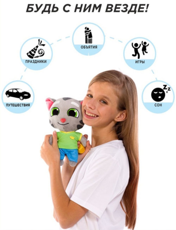 Оставить отзывМягкая игрушка Talking Tom: Gold Run – Talking Tom выполнена в виде персонажа и главного героя – говорящего кота Тома, бегающего за золотом, по мотивам популярной игры «Говорящий Том: Погоня Героев» (Talking Tom: Hero Dash).