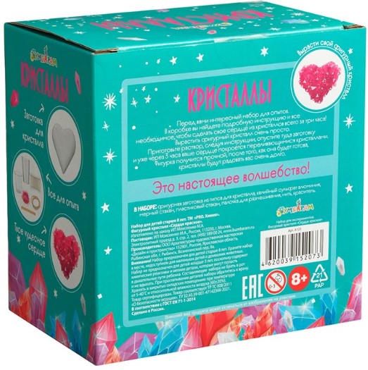 Характеристики набора для экспериментов Кристаллы: Сердце красное: