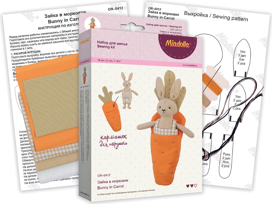 В набор входят все необходимые материалы для изготовления игрушки: ткань 100% хлопок, синтепон, хлопчатобумажные нитки мулине Gamma, швейные нитки, швейная игла, выкройка, подробная инструкция с картинками.