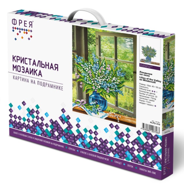 Характеристики набора для творчества: Кристальная алмазная мозаика – Ландыши на окне (40х50 см):