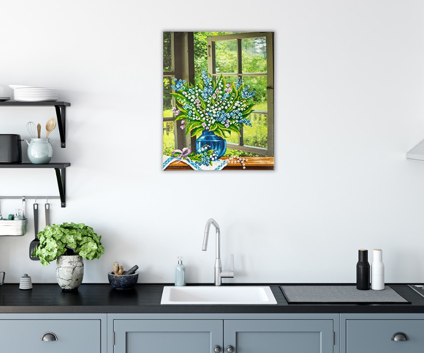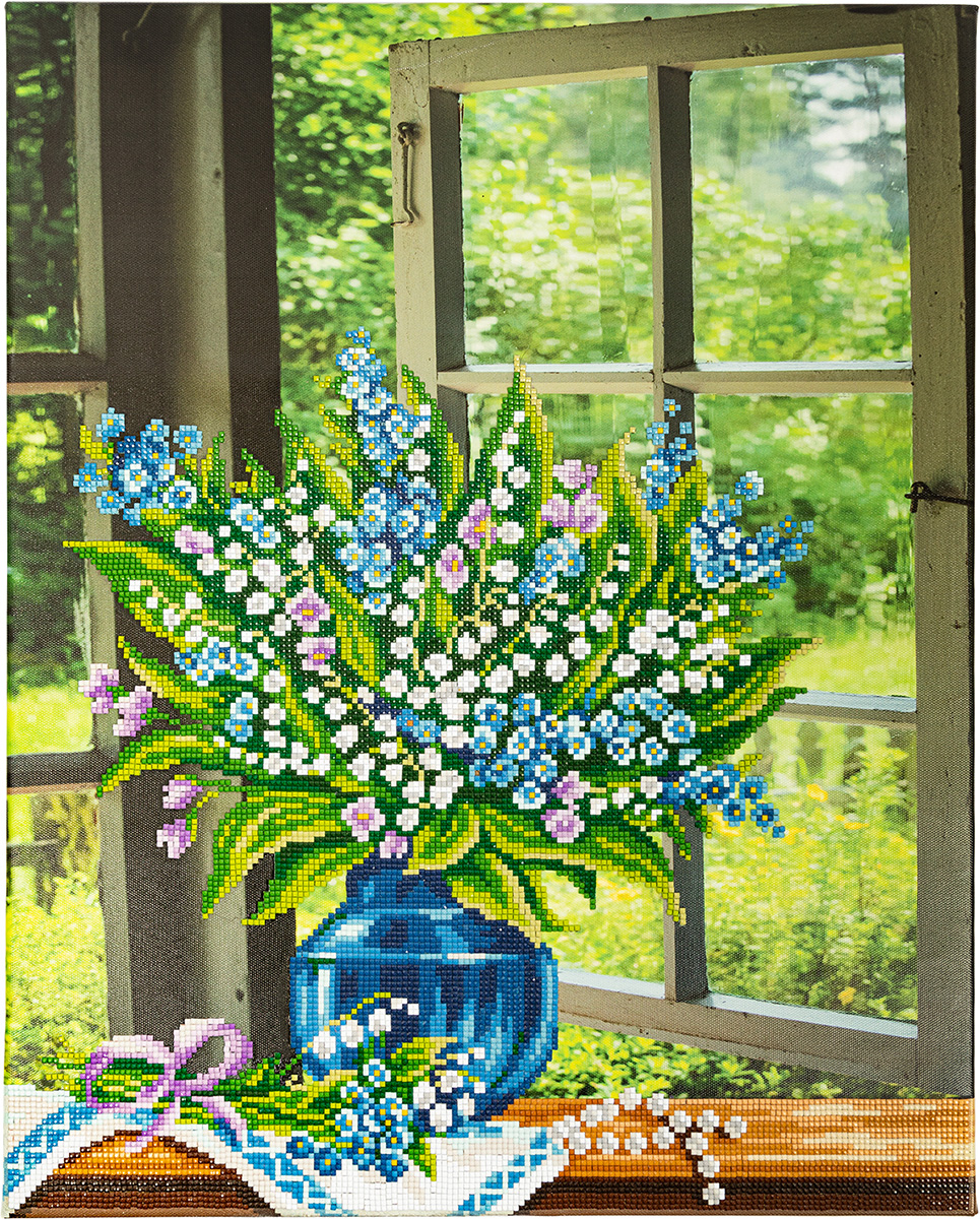 Набор для творчества: Кристальная алмазная мозаика – Ландыши на окне (40х50 см)