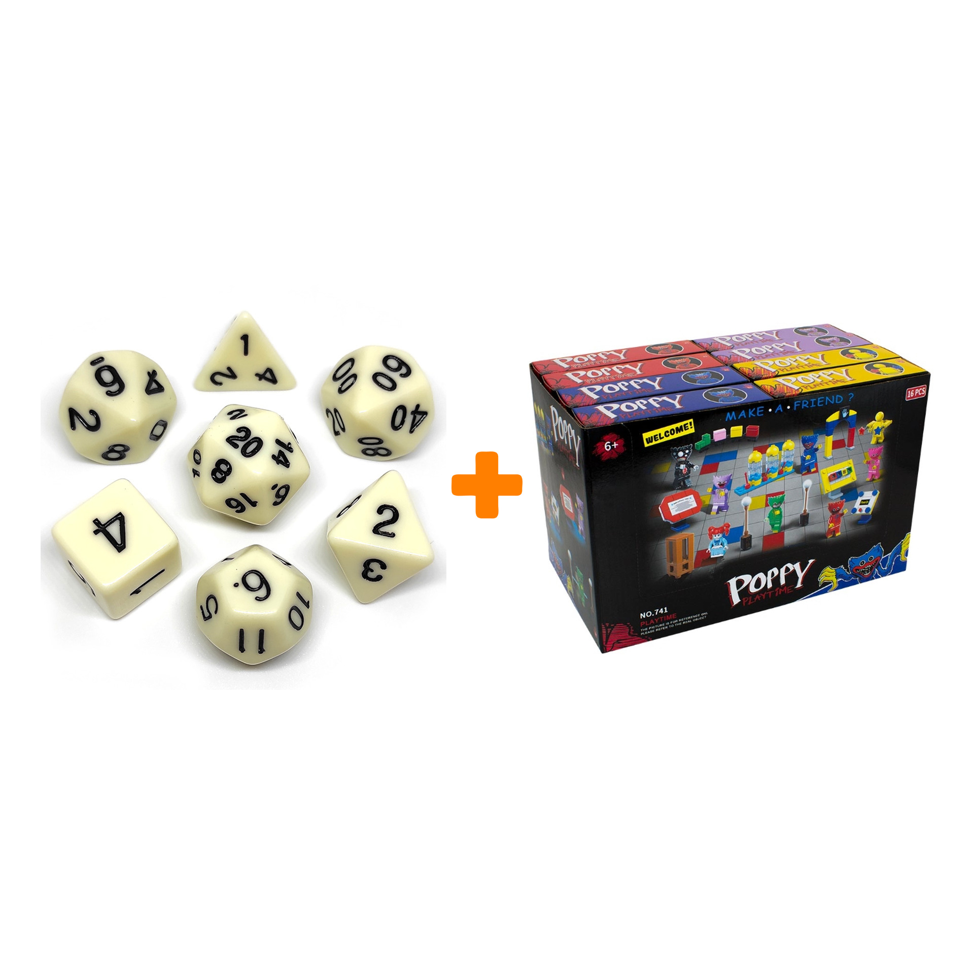 Набор кубиков Симпл для RPG 7шт бежевый + Конструктор Huggy Wuggy 33 детали Набор