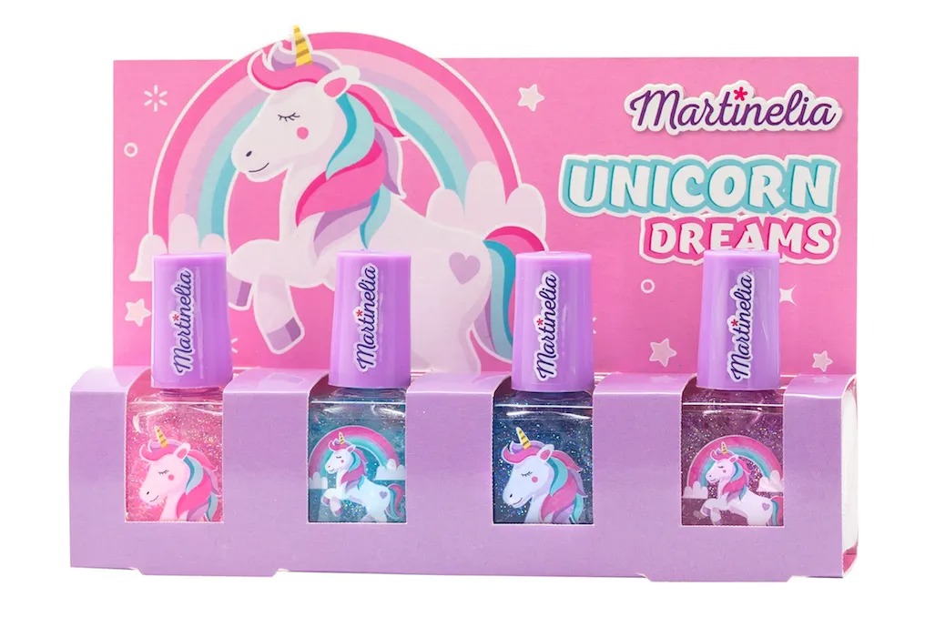 Детские лаки для ногтей Martinelia изготовлены из безопасных ингредиентов, не вызывают аллергии и легко снимаются без жидкости для снятия лака. Имеют полупрозрачный оттенок с добавлением блесток. Они идеально подходят для девочек от 4 лет. Маленькой моднице очень хочется красивый маникюр как у мамы. Так подарите ей набор из четырех детских лаков Martinelia «Мечты Единорога»!