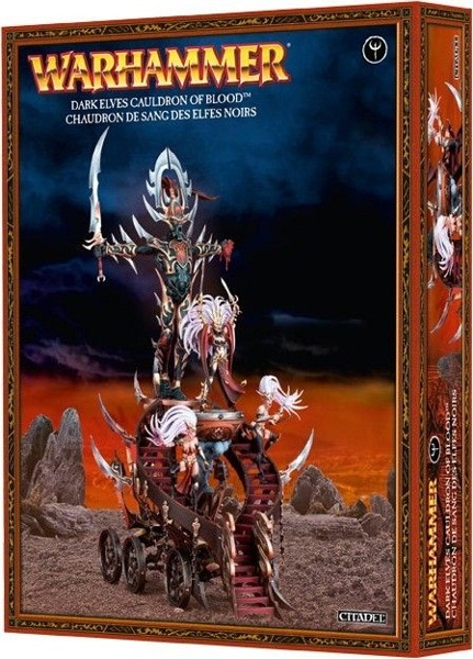 Котел Крови – это алтарь Кхэйну, Кроваворукому Богу. Управляемый Ведьмой Смерти и двумя ее служками, Котел сочится темными энергиями, вводя ближайших Темных Эльфов в кровожадный экстаз. Рядом с котлом установлена огромная статуя Кхейна. Две ведьмы, вооруженные парами кинжалов, направляют колесницу. У ног Кроваворукого Бога можно установить как миниатюру Ведьмы Смерти, вооруженную кинжалом и кубком, так и Королеву Ведьм Хеллеброн, вооруженную Мечом Смерти и Проклятым Клинком. Какую бы из старших ведьм Вы не выбрали, в наборе всегда есть дополнительная подставка пехоты для оставшейся.
