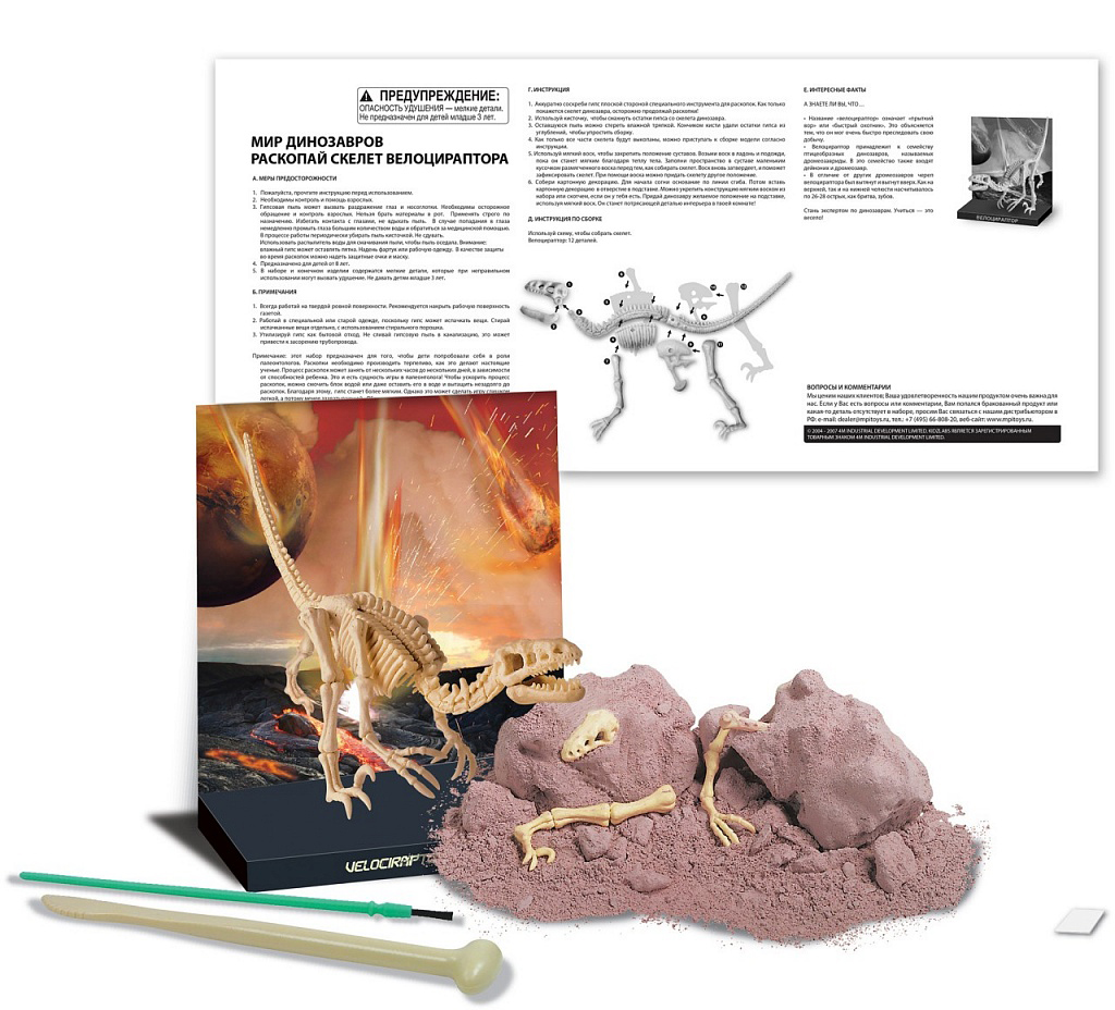 Комплектация научного набора Мир динозавров: Раскопай скелет ndash; Велоцираптор: