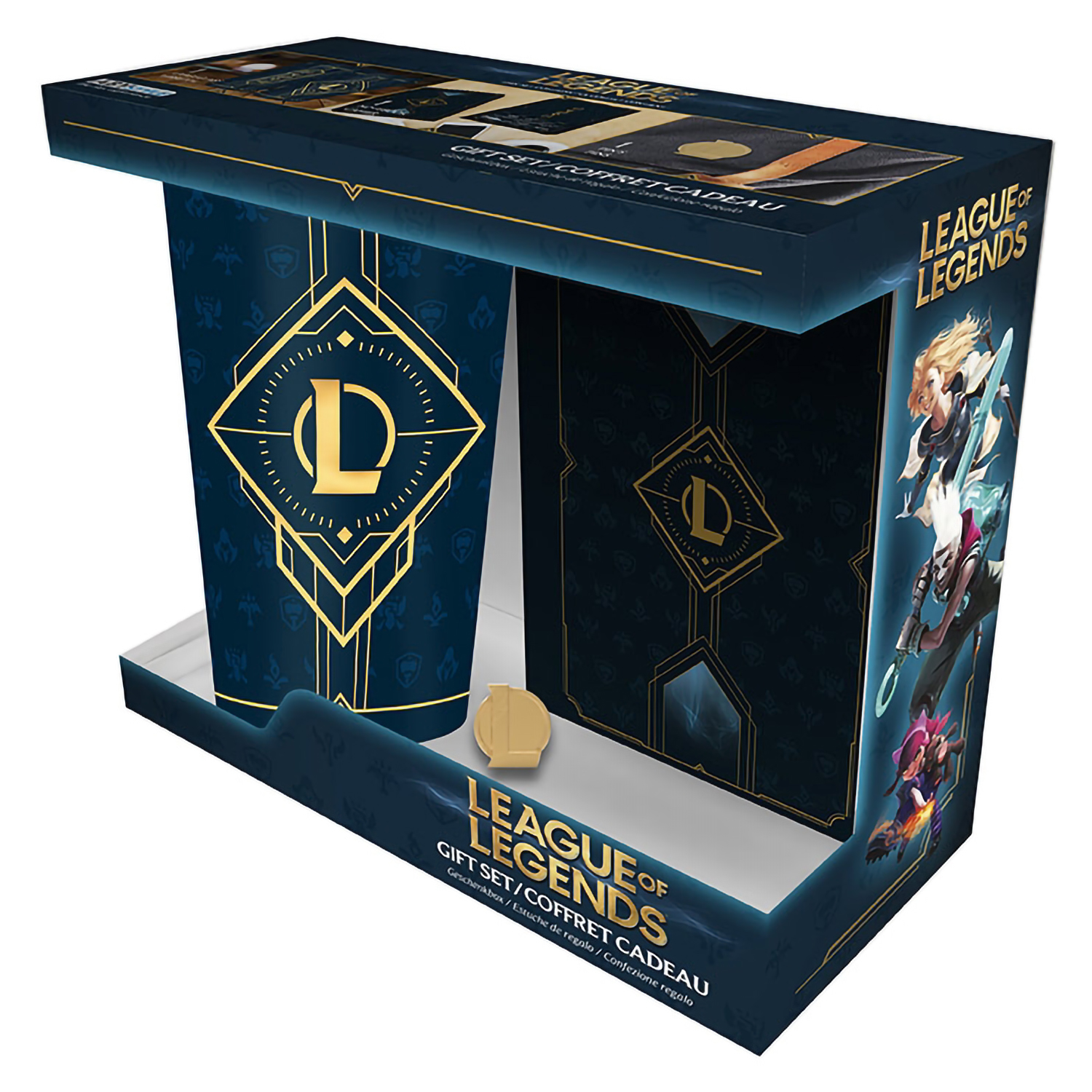 Описание подарочного набора League Of Legends: Hextech Logo (Стакан, значок, блокнот):