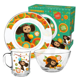 Набор посуды «Чебурашка» – чудесный набор посуды с любимым героем советских и современных мультфильмов. Детская посуда изготовлена из стекла, подходит для горячих и холодных блюд и напитков. Набор детской посуды состоит из 3 предметов:...