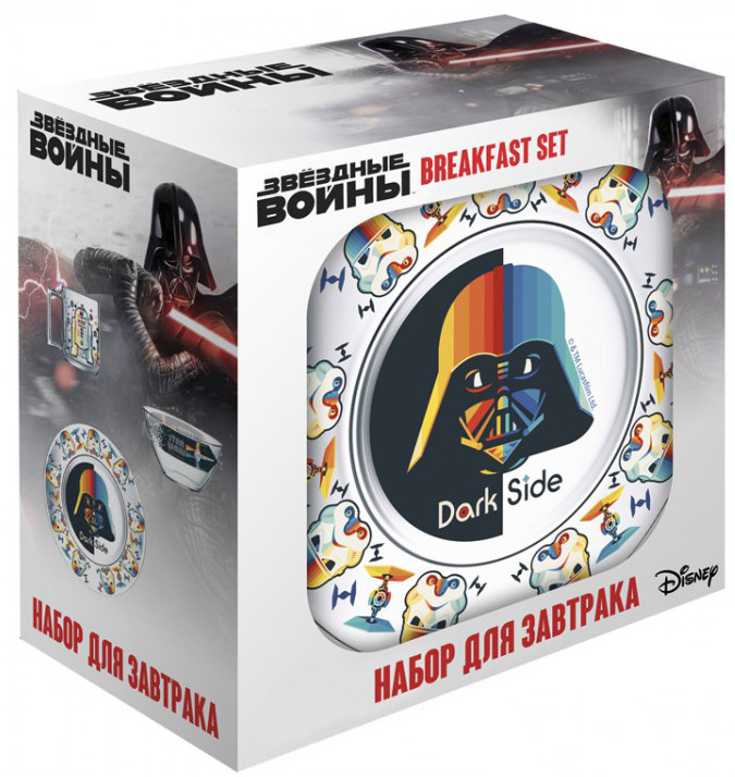 Набор посуды для завтрака Star Wars создан по мотивам киноэпопеи в жанре космической оперы, включающей в себя 11 художественных фильмов (9 эпизодов основной саги, 2 фильма «историй»), а также анимационные сериалы, мультфильмы, телефильмы, книги, комиксы, видеоигры, игрушки и прочие произведения, созданные в рамках единой фантастической вселенной «Звёздных войн», задуманной и реализованной американским режиссёром Джорджем Лукасом в конце 1970-х годов и позднее расширенной.