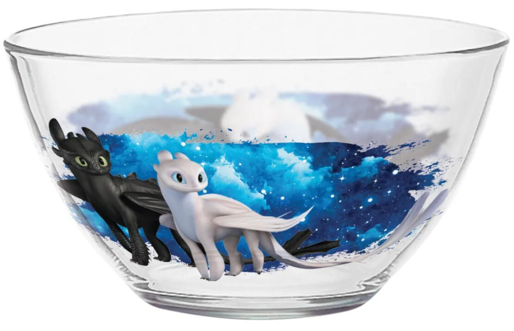 Набор детской посуды Как приручить дракона из качественного стекла с изображением героев популярного мультика Как приручить дракона станет прекрасным подарком ребенку!
