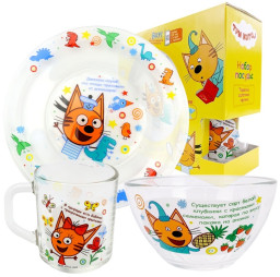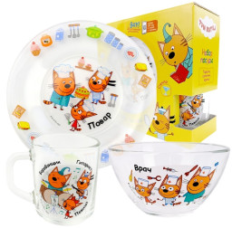 Характеристики набора посуды Три кота: Интересные факты (3 предмета / стекло):