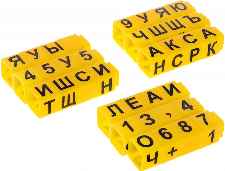 - 36 умных кубиков содержат 144 грани с буквами, цифрами и знаками препинания. В комплекте от 2 до 6 шт. каждой буквы и цифры в зависимости от частоты их использования.