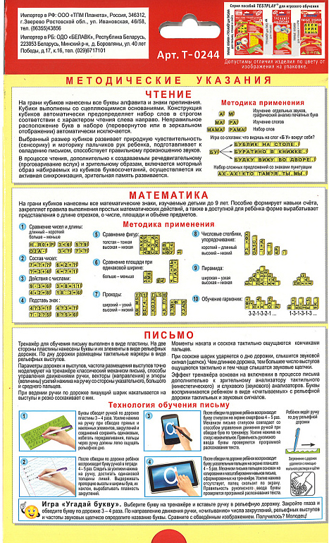 Характеристики набора Умные кубики + тренажер для письма:
