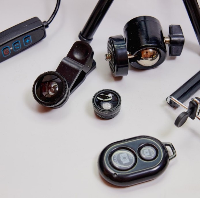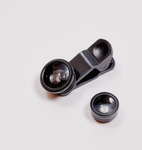 - Набор линз – рыбий глаз, широкоформатная и линза для макросъёмки. Линзы крепятся на камеру смартфона и позволяют снимать фото и видео с разными необычными эффектами.