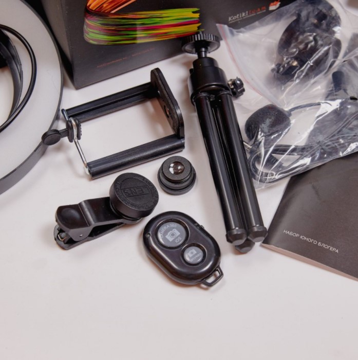 Набор для детей и подростков, которые увлекаются блогингом или только хотят создать свой канал. В состав набора входит все, что нужно, для того чтобы начать снимать ролики. Все элементы и разъемы легко совмещаются друг с другом и подходят для любого смартфона.