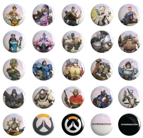 Набор значков Overwatch Buttons 50-Pack с изображениями персонажей из многопользовательского компьютерного шутера от первого лица Overwatch, разработанного американской компанией Blizzard Entertainment.