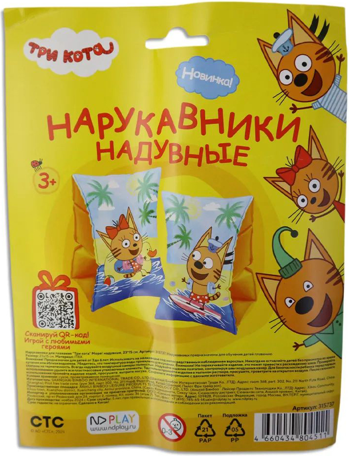 Характеристики нарукавников для плавания Три кота Море! (надувных):