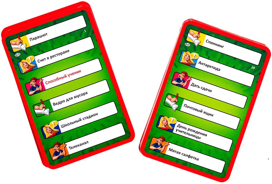 Простая и интересная игровая механика в сочетании с элементами соревнования делают вечера, проведенные с Activity незабываемыми. Больше угаданных слов с карточек за минуту, больше шансов добраться до заветного финиша. Подходит для больших компаний до 16 человек. Игра идеальна для вечеринок, посиделок с семьей. Настольная игра на объяснения слов или словосочетаний с помощью рисования, словесных описаний и пантомимы. Увлекательная игра, развивающая коммуникативные навыки, находчивость, воображение, артистичность, ассоциативное мышление.